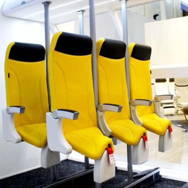 Una nueva tecnología busca instalar “asientos semisentados” en vuelos cortos para meter más pasajeros en el avión y aumentar ganancias.