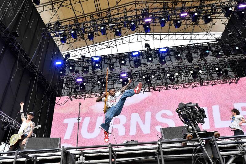 Este sábado, en medio de la segunda jornada del festival Lollapalooza Chile 2022, se presentó la banda de hardcore punk estadounidense, Turnstile, en el escenario VTR Stage, uno de los principales del evento.