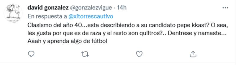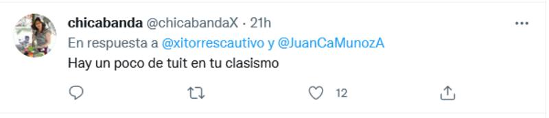 Dichas palabras no pasaron desapercibidas en Twitter, en donde cuestionaron el clasismo implícito de las palabras. De hecho, la frase "hay un poco de tuit en tu clasismo" se repite en más de una ocasión en las reacciones.