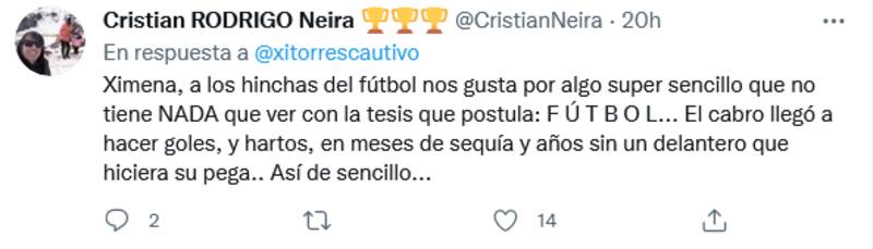 "Hay un poco de tuit en tu clasismo" es una de las frases que más se repiten como reacción a las palabras de la periodista sobre el delantero de "La Roja".