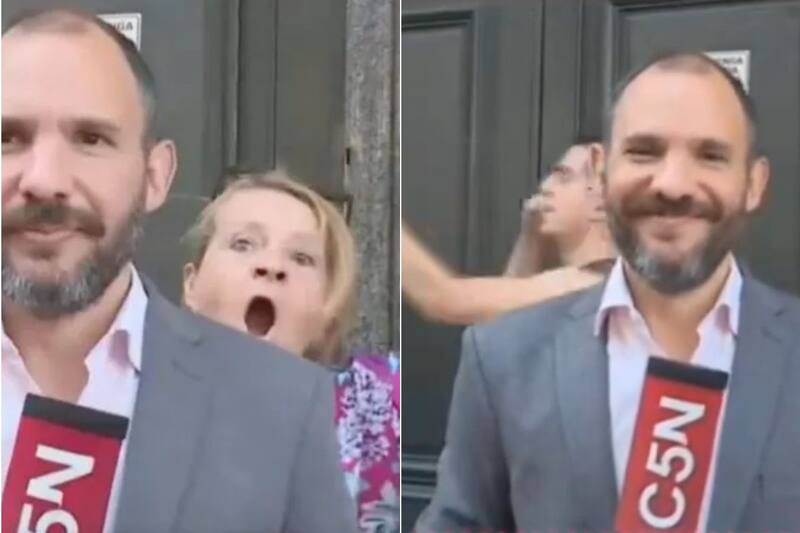 El periodista Nicolás Munafó, de canal C5N, contaba las novedades sobre la tramitación de la famosa “Ley Omnibús” desde el Congreso, cuando una mujer que pasaba por ahí aprovechó su minuto de fama.