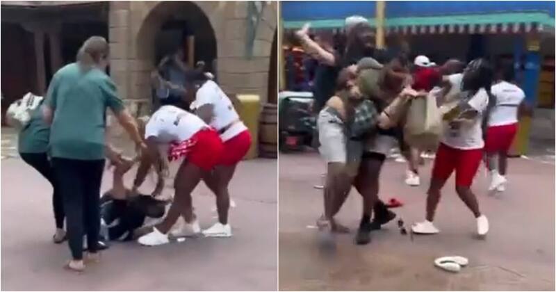 Los videos de la batalla entre dos familias en el parque temático de Mickey Mouse se viralizaron en redes sociales.