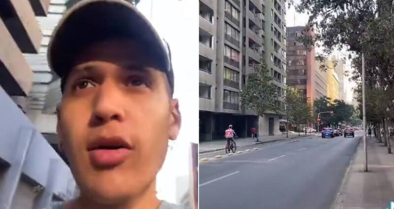 Mientras recorre la vía pública, el joven se muestra sorprendido por esta situación. “¿Dónde veo la navidad en Chile?”, se pregunta.