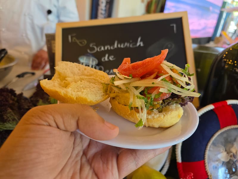 “Se trata de un sandwich que se da en la caletas desde Coquimbo hasta Iquique en el norte y nació con la función de facilitar la alimentación de los pescadores”, nos explica Luis Gaete, chef del Rosa Agustina de Guanaqueros, uno de los resorts más conocidos de la zona.