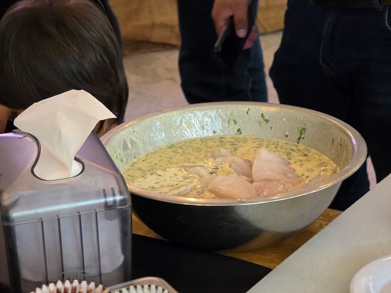 Esto último, para que la costra del pescado quede más crocante y a la vez, esponjosa. La consistencia del batido también importa “no tiene que ser muy líquido ni muy espeso, que sea untable”, asegura el chef.