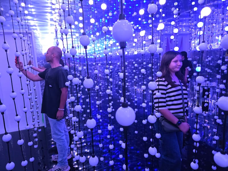 Dopamine Land cierra con el que a mi juicio es la parte más entretenida, que es el Oasis Cósmico, un cuarto de luces que cuelgan del techo y que se ven replicadas hacia el infinito gracias a su techo y paredes reflectantes. No solo es el lugar más bonito y que se siente más tecnológico, sino que por el tipo de luces que va cambiando, vas a poder sacar las mejores fotos y selfies del recorrido, sin ninguna duda.