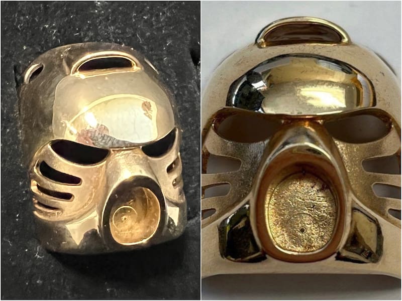 En particular, es una máscara dorada de Bionicle con oro de 14 quilates y 2,5 centímetros de alto, la cual había llegado al local ubicado en State College dentro de una caja de joyas que había sido donada.