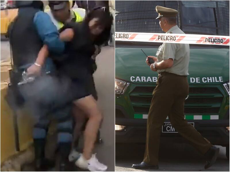 En los primeros videos que se han difundido, se puede ver cómo uno de los guardias la sujeta por detrás frente a una patrulla de Carabineros, para que así los agentes continuaran con la detención policial.