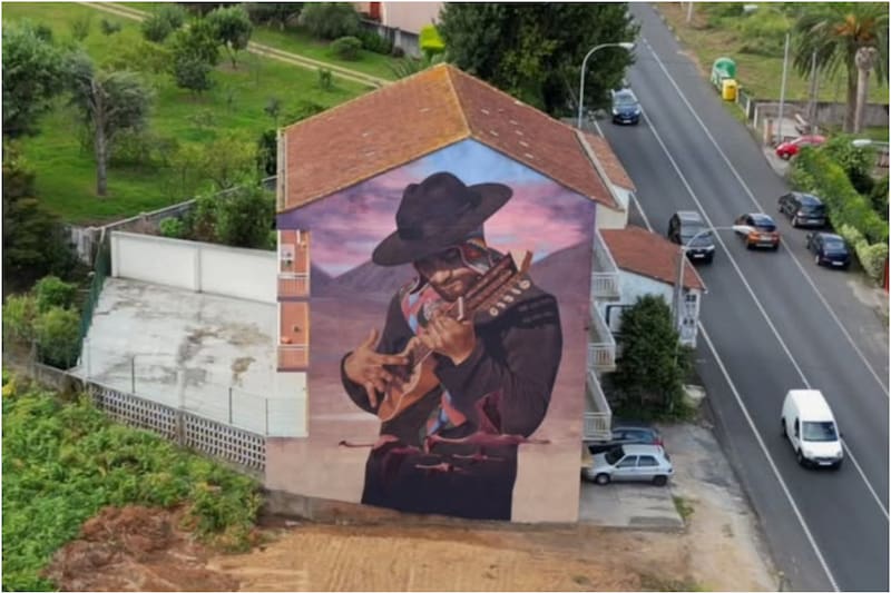 El mural de Cristóbal Persona, pintado en un edificio de tres alturas, no solo resalta por su técnica, sino también por su profundo mensaje: está dedicado a las comunidades indígenas, con una representación de un músico andino.