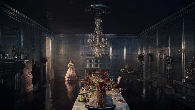 Ya desde sus primeras secuencias, la película deja en claro que su mayor interés está en subordinar la aspereza emocional a su propuesta visual, construyendo en el camino un universo estético de contrastes marcados entre la decadencia de la casa que da nombre al relato, y las limitantes propias del siglo 18. frente a la opulencia de la mansión vecina, que funciona como contrapunto.