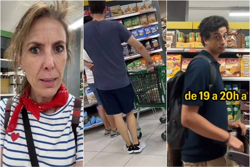 “Son las 19:05 y estamos en la hora, tenemos la compra hecha y estamos dando vueltas” por los pasillos del supermercado, comentan entre risas.