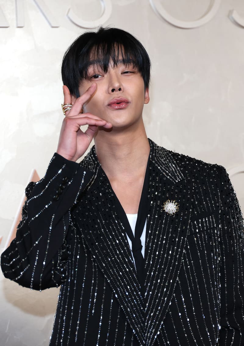 El actor y cantante vistió un elegante traje de la colección Primavera 2025 de Amiri. Con su total black acompañado de pedrería brillante, Rowoon conquistó las miradas internacionales.