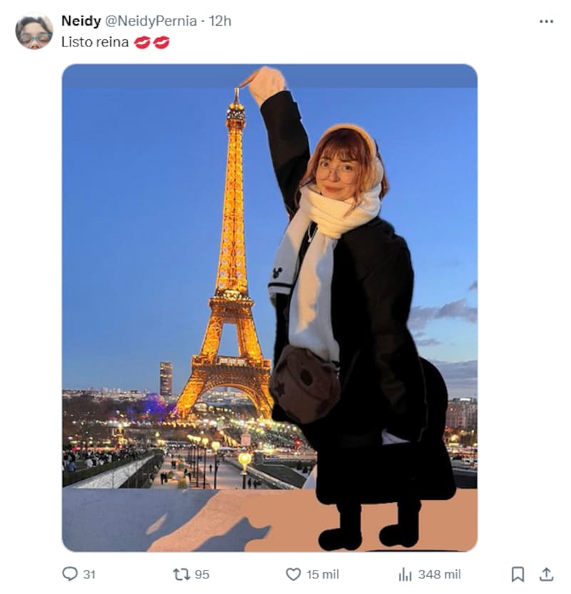 “¿Alguien me podría ayudar con un photoshop para que parezca que toco la punta de la torre eiffel? ¡Por favor!”. Bastó ese mensaje de la usuaria de X llamada @AnsiChan para concretar un vendaval de memes que seguían la clásica tendencia que deja en claro que no hay que solicitar ese tipo de maquillajes digitales en redes sociales.