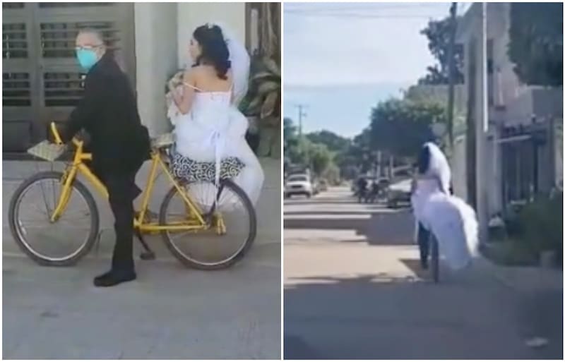 El registro fue captado por una amiga de la novia, quien viajaba a la ceremonia en un auto que iba tras padre e hija. “El papá de mi amiga la llevaba a todos lados en bicicleta, no podia faltar llevarla a la iglesia el dia de su boda. Felicidades amiga la maslinda!!”, escribió la usuaria @angieperaza5.