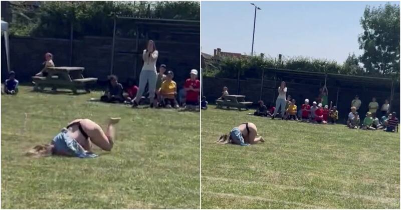 “No soy una persona deportiva, pero mi hija me insistió tanto que accedí. Sabía que llegaría última pero quise participar”, comentó la joven madre al medio británico The Sun. Pero a pesar de las buenas intenciones, en el momento que sonó el silbato Katie se tropezó, cayendo de rodillas al piso con su cara enterrada en el pasto.