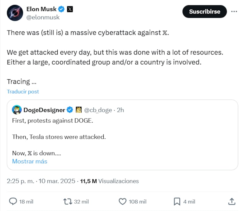 “Hubo (todavía hay) un ciberataque masivo contra X. Nos atacan todos los días, pero en este caso se utilizaron muchos recursos", planteó el multimillonario.