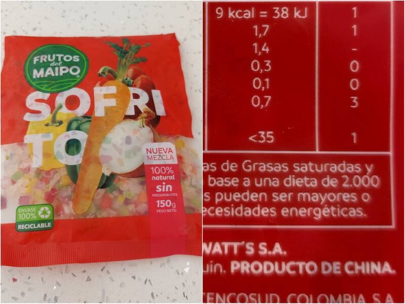 Identificada como María Eugenia Díaz, la internauta subió una fotografía de un paquete de sofrito de la marca Frutos del Maipo que en la bolsa tiene impresa la frase “producto de China”.