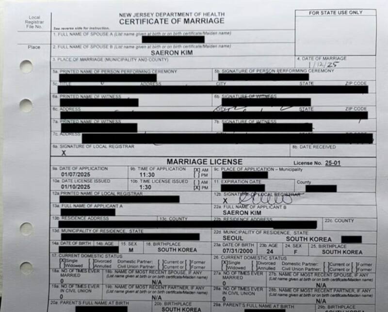 El hombre, quien decidió no exponer su nombre, detalló que conoció a Kim Sae Ron en noviembre de 2024 y, a raíz de una fuerte conexión, decidieron casarse legalmente en los Estados Unidos en enero de 2025.