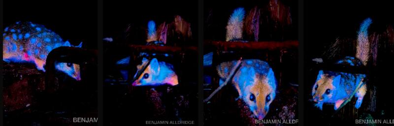 Alldridge andaba con un equipo fotográfico “muy especializado”, según contó, para inmortalizar la biofluorescencia de estos animales, de la cual sólo había sido testigo con quols en cautiverio en un santuario de vida silvestre.