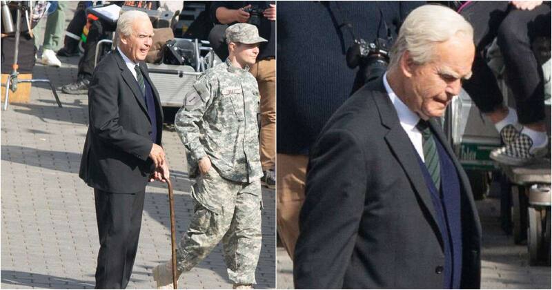 Pierce fue captado en pleno set de filmación en Irlanda del Norte, donde se mete en la piel de un veterano de la Segunda Guerra Mundial.