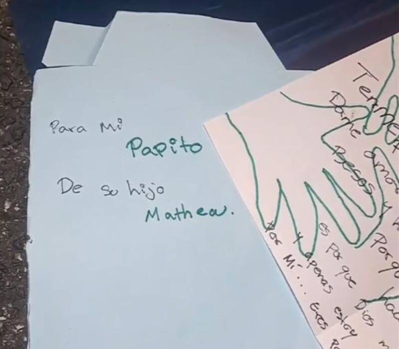 Al costado de su cuerpo, notaron unos instantes más tarde que varias de sus pertenencias estaban tiradas. Los voluntarios buscaron entre ellas para poder identificarlo antes de dar aviso a las autoridades. Entonces se encontraron con una tan emotiva como triste sorpresa: una carta, de puño y letra, que le había dedicado su hijo.