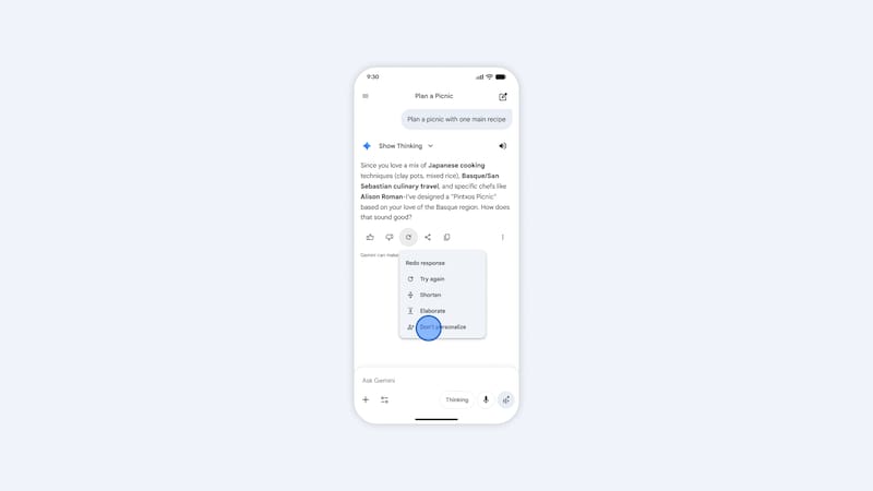 Incluso cuando las apps estén conectadas, Google no personaliza todas las respuestas. Su objetivo es que Gemini use la Inteligencia Personal solo cuando determine que hacerlo será útil.