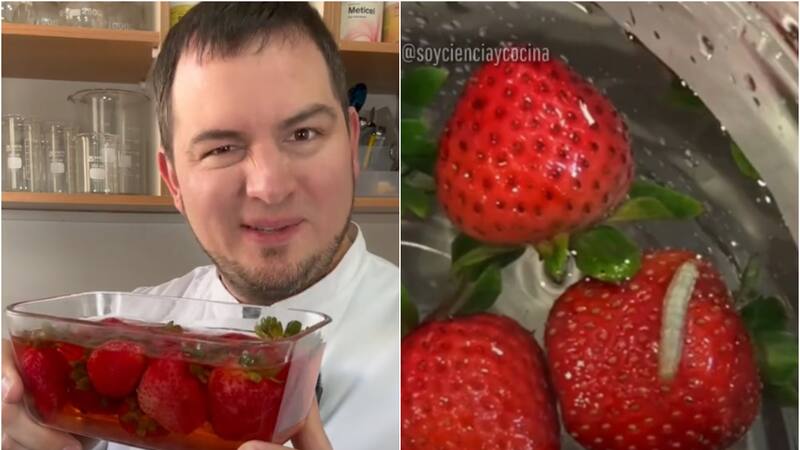 El tiktoker y chef realizó un experimento con frutillas en agua con sal tras el boom de videos virales sobre “gusanos”. ¿Realmente hay insectos en las frutas? Aquí la sorprendente respuesta.