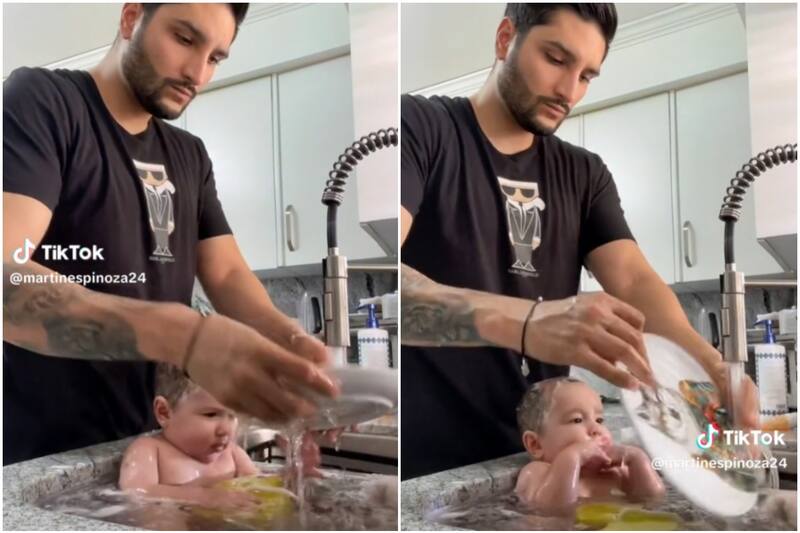 Por Eduardo OrtegaHombre bañó a su bebé mientras lavaba la loza: viral dejó la escoba en redes
