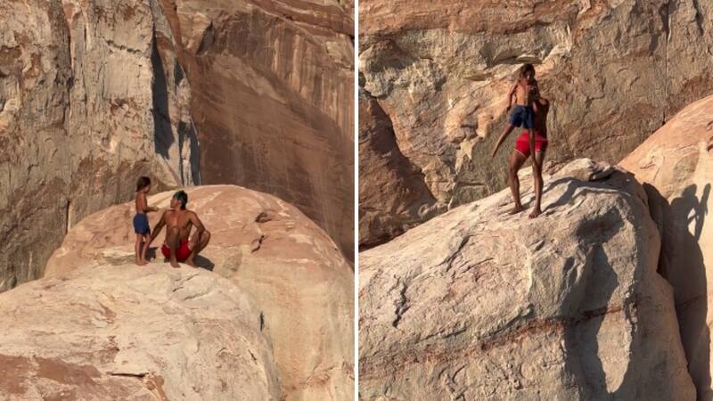Un video que muestra a un padre lanzando a su hijo desde un acantilado se volvió viral.
