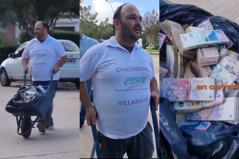 Por las redes sociales se ha vuelto viral el video de un comerciante de Córdoba, en Argentina, quien tuvo una llamativa forma de protestar en contra de los elevados precios de la electricidad en el país vecino. Darío Villarruel acudió a hasta una sucursal para pagar la cuenta de la luz con una carretilla llena de billetes.