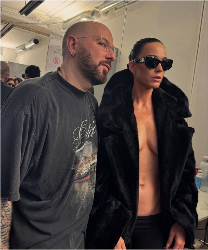 Por Paloma ParejaKaty Perry llegó a desfile con el look más peligroso: en topless y con abrigo de piel