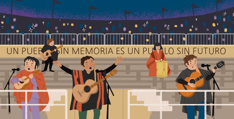 Lo que pasa es que mi hijo el año pasado tenía 3 años y empezó a escuchar música. Yo creo que, en general, eso pasa cuando a los papás escuchan música, a ellos les gusta lo infantil pero también los grupos que se escuchan en la casa. Eso, añadido a que siempre hemos sido buenos para leer y comprarle cuentos, de repente empecé como a buscar libros de este tipo que que existen, de Frida Kahlo, David Bowie, etc… y busqué sobre música chilena y no encontré mucho. Ahí se me encendió la ampolleta. Se unieron esas dos cosas y mis ganas de contarle esta historia a mi hijo y dije ‘ya, voy a hacer este proyecto’. Me enamoré de la idea.