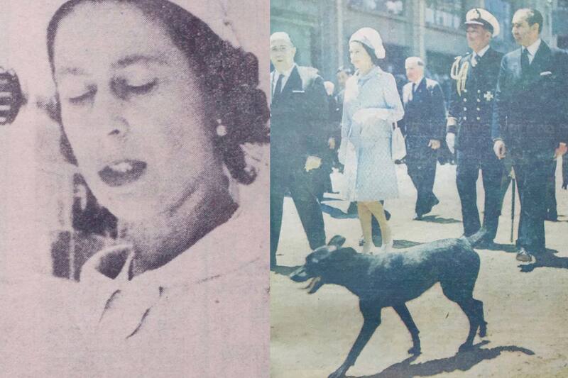 Durante la visita de la monarca a Valparaíso en 1968, un perrito se cruzó justo cuando fue captada una fotografía utilizada en la portada de un diario.