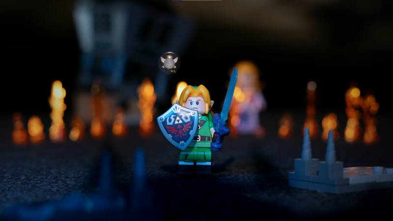 Así es como a través de las redes sociales de Nintendo y Lego, se mostró un adelanto de lo que será este nuevo artículo de colección, en el cual se puede apreciar una animación de stop-motion con Link de frente, acompañado del hada Navi, una Princesa Zelda difuminada en el fondo, una anillo de fuego y una amenaza grande pero desconocida frente a el.