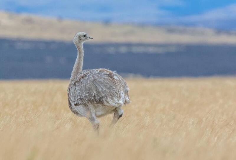 Un solitario ñandú (Rhea pennata) picotea lo que pilla en el suelo: ramitas, semillas, algún bicho, todo sirve.