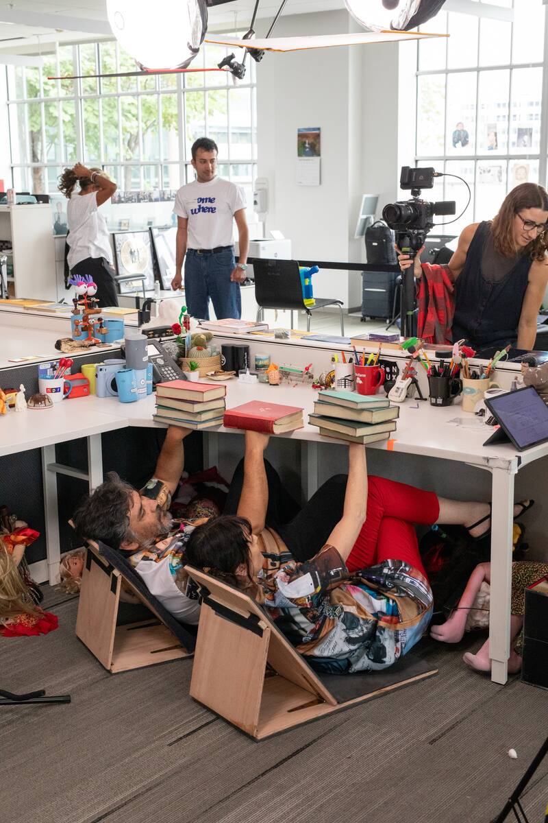 Las fotos del detrás de cámaras muestran cómo el equipo de 31 Minutos transformó la oficina de NPR en Washington en un set de humor y música, en una jornada que combinó la comedia, música y ternura artesanal.