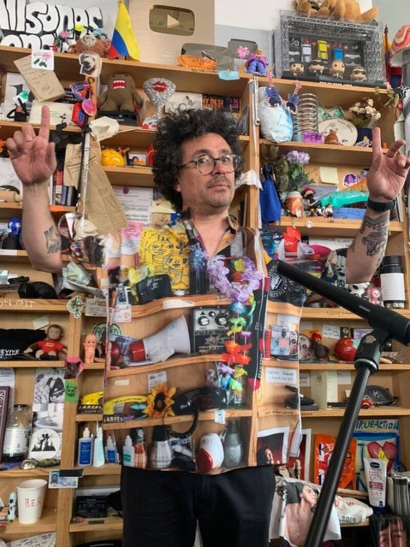 Todos lucieron camisetas diseñadas para la ocasión, para acoplarse con el set del Tiny Desk, resaltando así el espíritu íntimo del espacio.
