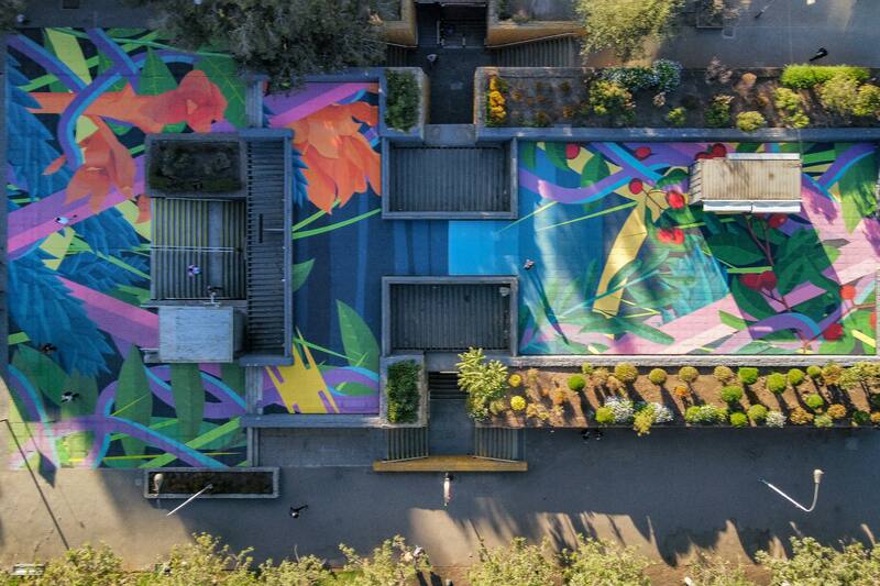 Según detalló en sus redes el propio Cekis, se trata de una intervención de mil metros cuadrados que lleva por nombre “Jardín Salvador”, con pintura acrílica sobre piso de concreto.