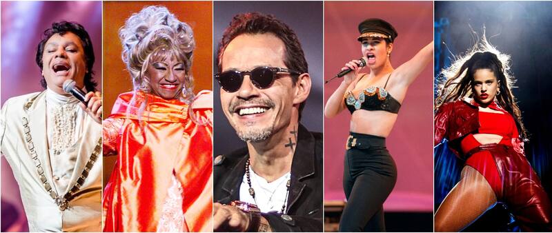 Entre los latinos y cantantes de habla hispana destacan en el lugar 89 Selena, Vicente Fernández en el 95, Juan Gabriel se quedó con la posición 172, Marc Anthony en el 167, Mercedes Sosa en el puesto 160, Rocío Dúrcal en el 139, y Rosalía cerró la lista con la posición 200.