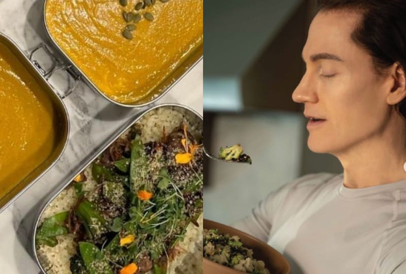 Además de una dieta basada en verduras como brócoli, coliflor, ajo, jengibre y semillas de cáñamo con aceite de oliva extra virgen. También consume 111 pastillas para complementar su nutrición. No usa sal ni otros condimentos, excepto cloruro de potasio.