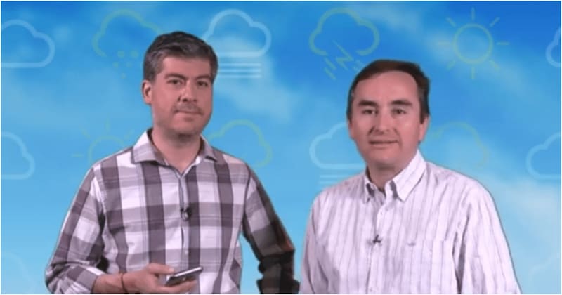 La escena se dio hace exactos tres años, en 2018, en un live entre el periodista medioambiental y el meteorólogo cuando eran parte de CHV, ya cerrando la transmisión aquel 11 de septiembre.