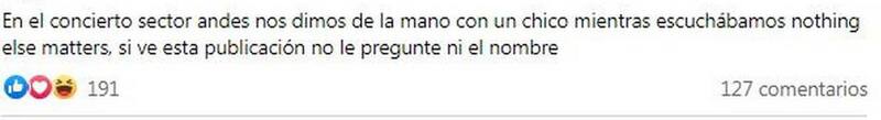 La joven de nombre Verónica, realizó una publicación en el grupo de fanáticos Metallica en Chile de Facebook, que cuenta con más de 20 mil seguidores, que se tomó de la mano con un chico en el Sector Andes, pero que ni siquiera le preguntó el nombre, probando suerte en caso de que viera la publicación.