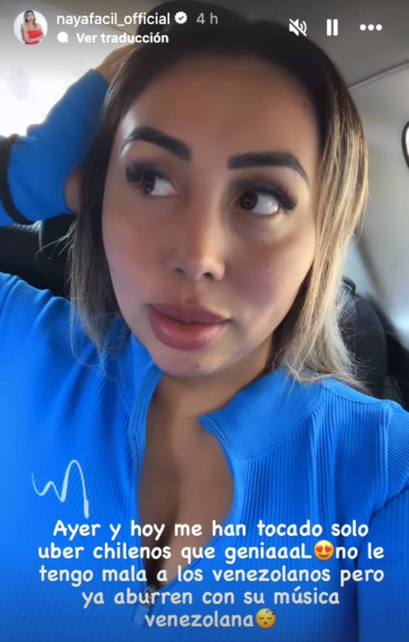 La reina de Viña 2024 agregó qué era lo que le molestaba de los conductores extranjeros de las aplicaciones: “No le tengo mala a los venezolanos pero ya aburren con su música venezolana”. Más tarde, Naya aclaró que su comentario no buscaba ofender y que en sus redes sociales había “libre expresión”.