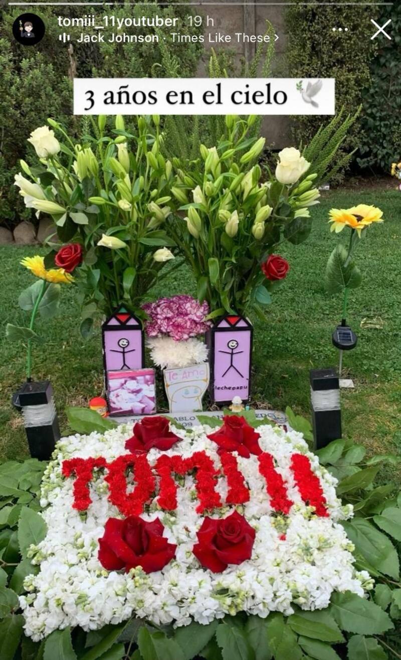Por ese motivo, sus padres compartieron a través de Instagram un recuerdo en nombre del pequeño youtuber. La familia subió a las historias una fotografía en el cementerio con un mensaje que decía “3 años en el cielo”, el post estuvo acompañado de la canción “Times Like These” de Jack Johnson.