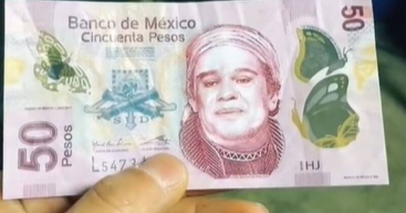 Una insólita situación vivió un joven mexicano hace unos días. Recibió un billete de 50 pesos y no se dio cuenta que detrás, tenía la cara del cantante Juan Gabriel impresa.