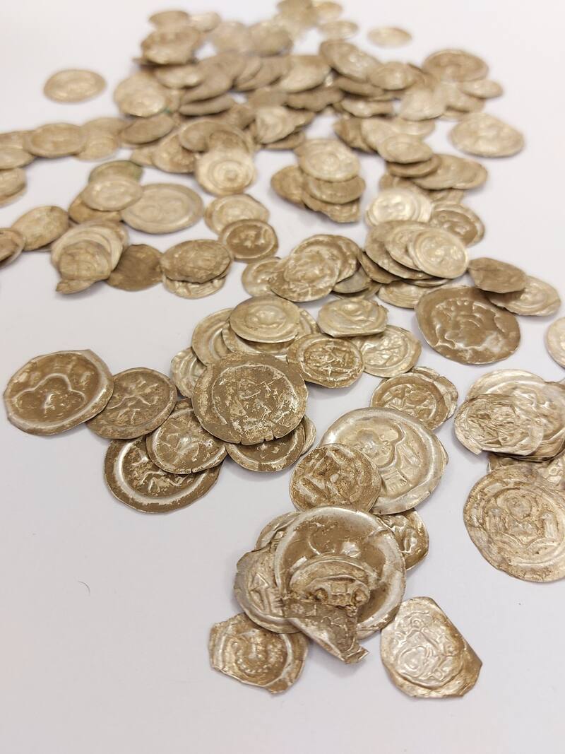 Estas monedas se denominan bracteatos, las cuales eran finas laminas de plata creadas a base de golpes de martillo. Las imágenes que están representadas en estas generalmente son seres mitológicos como ángeles o sirenas.