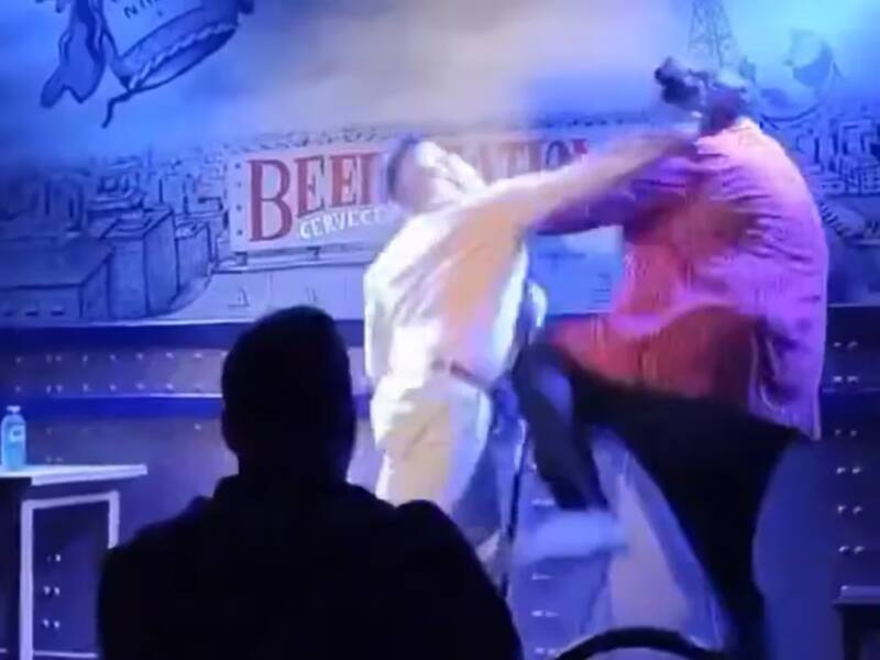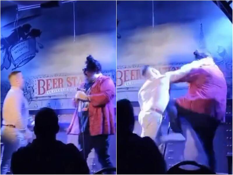 Entonces, el cómico pareciera decirle que deje de hablar sobre el tema, lo que provocó que el hombre nuevamente le de un segundo golpe en el rostro.