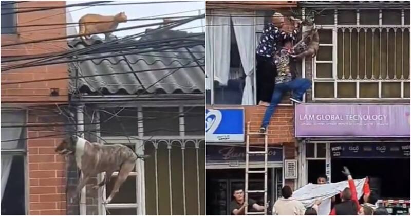 Según indicó el medio Noticias Caracol, todo ocurrió el pasado 2 de junio cuando el perro quedó colgando a cinco metros de altura por varios minutos después de perseguir a un gato naranjo que estaba en un techo de una casa.