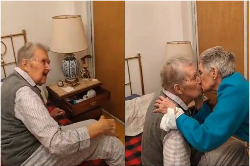 En la grabación, que dura apenas veinte segundos, se puede ver cómo el abuelo de Tomás estaba recostado, pero se incorpora como puede, con rapidez, emocionado, cuando ve entrar por la puerta a su pareja. “¡Ay, cosita linda, qué bien que estás!”, le dice con una sonrisa clavada.