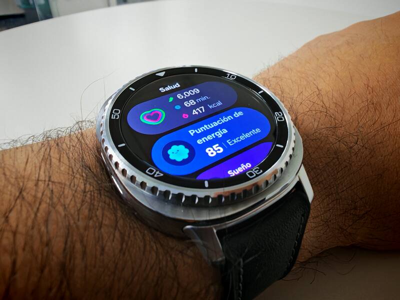 El Galaxy Watch 8 Classic, recientemente lanzado por la compañía viene a arreglar todo eso. Es un diseño clásico: es grande (46 mm), con un bisel metálico que además sirve para seleccionar cosas en el equipo, correas de cuero vegano en lugar de materiales sintéticos y tres botones que recuerdan a los grandes relojes deportivos de antaño.